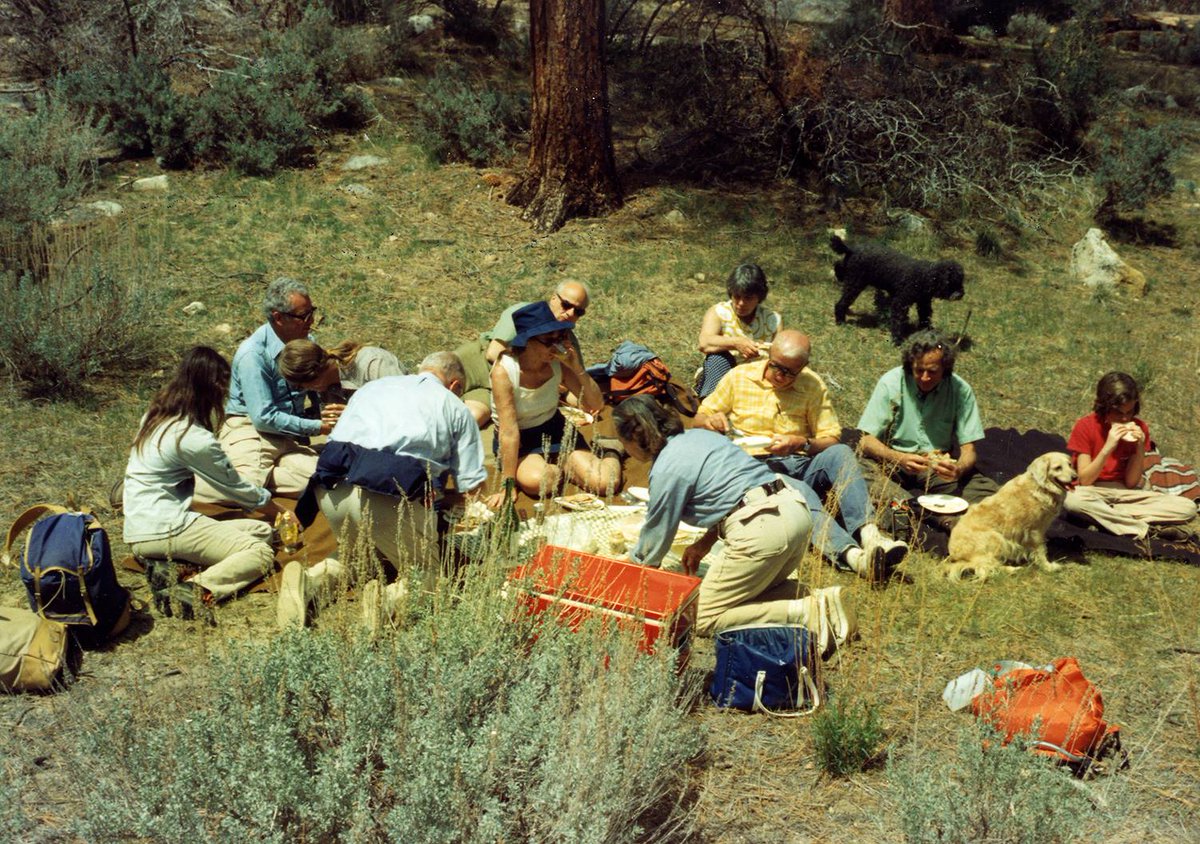 Hans Bethe, Murray Gell-Mann, Richard Feynman, Robert Bacher and their significant others picnicking in the San Gabriel mountains. The air must have crackled with all that physics brain concentrated in a few square feet. (Photo from
