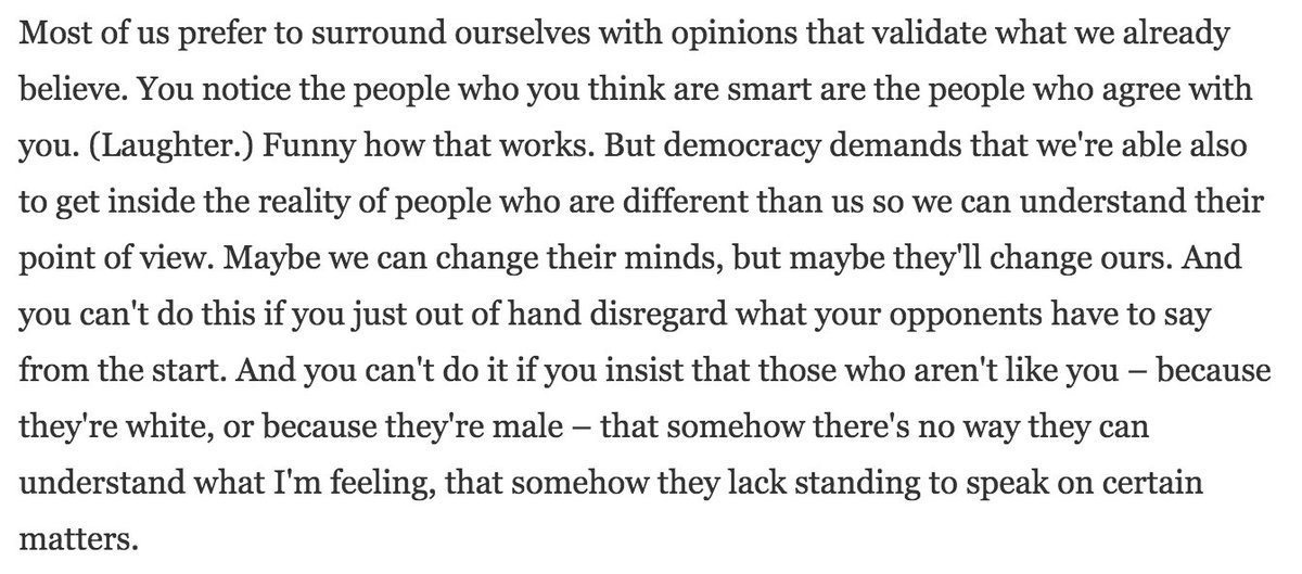 Obama is fantastic as usual here: Engaging with those with whom we vehemently disagree is an essential part of democracy. https://www.npr.org/2018/07/17/629862434/transcript-obamas-speech-at-the-2018-nelson-mandela-annual-lecture …pic.twitter.com/LhfEzKHQW0