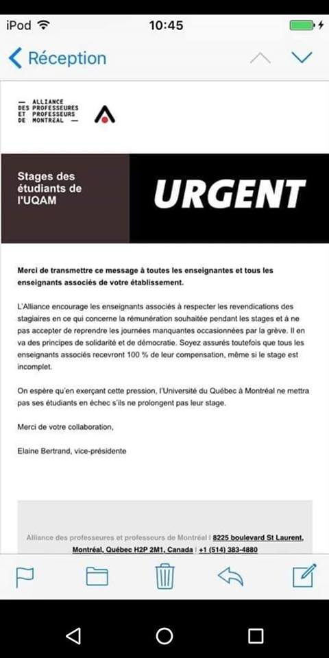 « Si l’UQAM réprime aussi sévèrement les stagiaires grévistes, c’est parce que le travail qu’on accomplit en stage est important et qu’il contribue à l’organisation du travail dans les milieux de stage. C’est précisément pour cette raison que nous exigeons d’être payées ! »https://twitter.com/LeDevoir/status/1116066916882440202 …