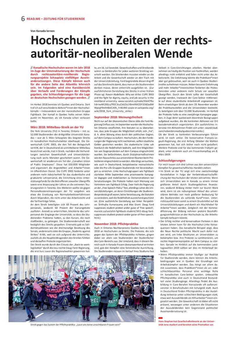 Dans l'édition estivale du journal étudiant et enseignant de gauche http://READ.ME publié par @gew_bund, un article sur la grève des stages y paraît.
