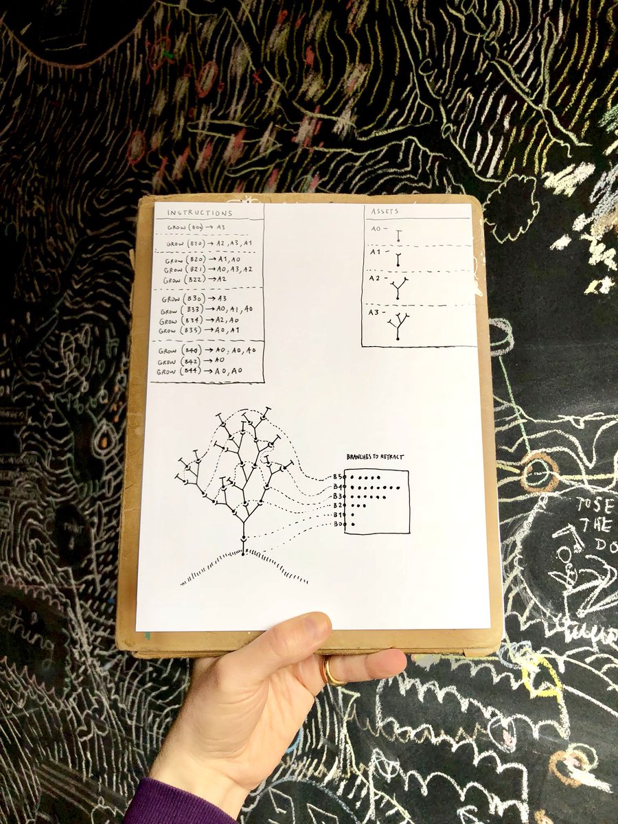 Drawing code first helps me wrap my mind around it. I’m working on a dynamic tree made up of hand sculpted assets. Aiming for an inteface which lets you configure custom 3D printable art toys.pic.twitter.com/djk7xz7X16