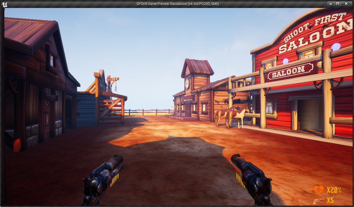 Some new #screenshotsaturday of the likely remaster of GunSpinning VR made with @UnrealEngine! 2/8 levels are almost completed. It works on PC VR and Oculus Go (also tested on cardboard). Planned to work on Vive Focus and Pico Gobelin too.pic.twitter.com/sj33owgA5f