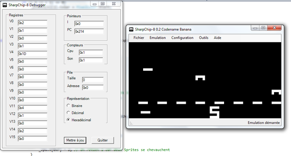 Mon émulateur SharpChip-8 avance encore un peu avec cette fois ci une intégration winforms et un débogueur ;)pic.twitter.com/bMNhM79e
