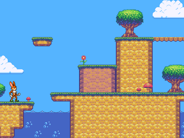 #screenshotsaturday "Rubba Rabbit" html5 platformer. gfx by Redshrike, @7SoulDesign and Surt. #1gam #1gamcrunchpic.twitter.com/pJyK1QTssG