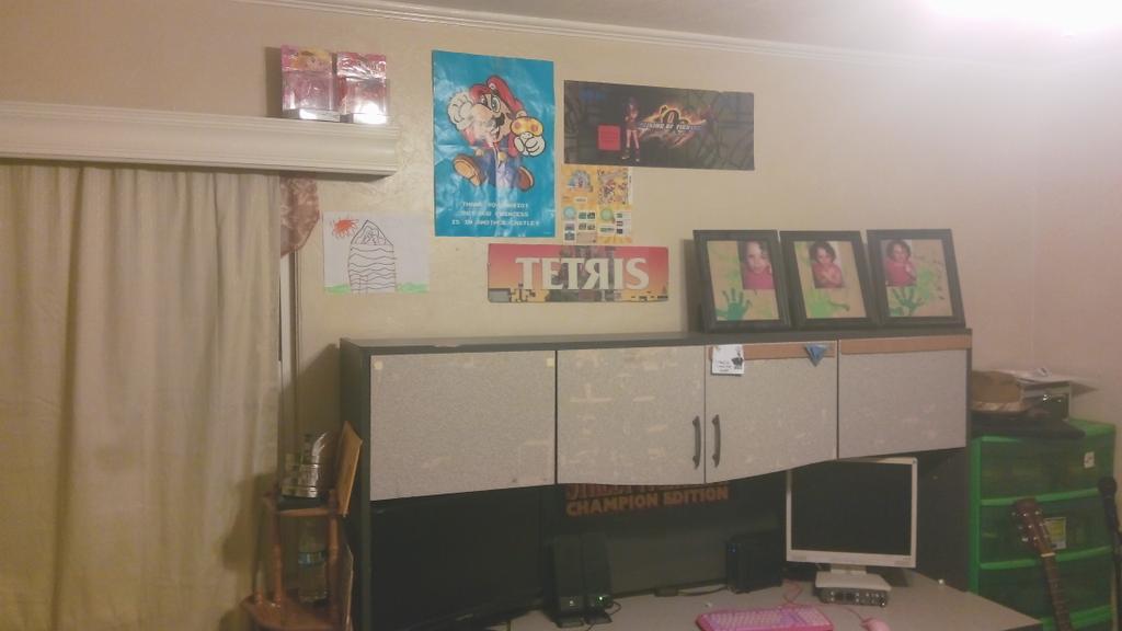 Here is my new office set up. To think I got this awesome desk for $30 at the thrift store. #Nintendo #retro #ohyeahpic.twitter.com/WcBSZVnmbT