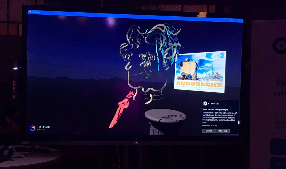 Essai du casque de réalité virtuelle pour dessiner en 3D au Magic Mirror du #FestivalAngouleme et réalisation d'un autoportrait.pic.twitter.com/RmErIS6jEo