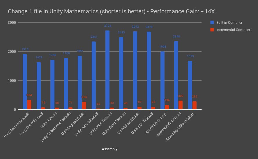 Look! We are working on an incremental C# compiler, for faster integration on large C# codebase in Unity. Try it out and feedback here: https://forum.unity.com/threads/unity-incremental-c-compiler.523993/ … pic.twitter.com/5ZsvzfpFth