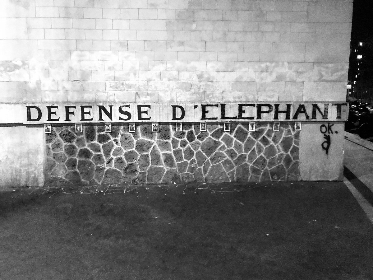 Et retrouvé en ligne ici : http://paris-bise-art.blogspot.com/2014/07/defense-delephant.html …
