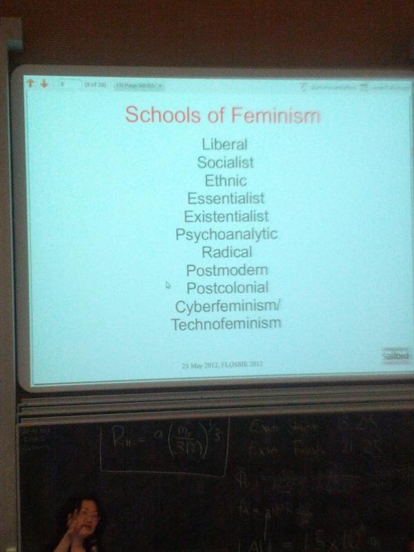 That's a lot of schools of feminism. I still don't subscribe to them though. Interesting talk thoughpic.twitter.com/TyyF8lSs