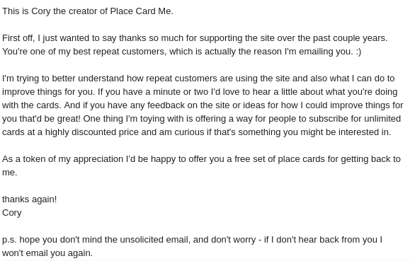 ...and we're live on https://www.placecard.me/ ! Now I need to setup email notifications for the typeform so I can follow up with people who fill it out. Off to Zapier
