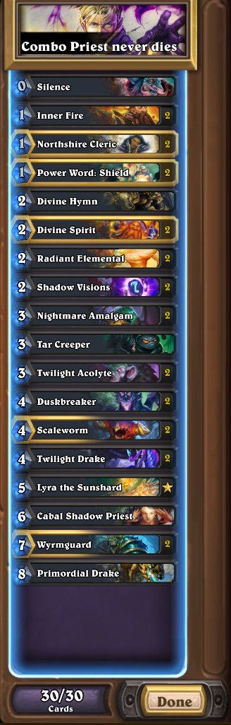 First time legend in the year of the Raven! Used this homemade combo priest list to get there! Played the decklist from rank 3 to legend with 83% winrate. Special thanks to @PatrynHS and jheewee for helping me refine the decklist.pic.twitter.com/dtT5Sio2sl