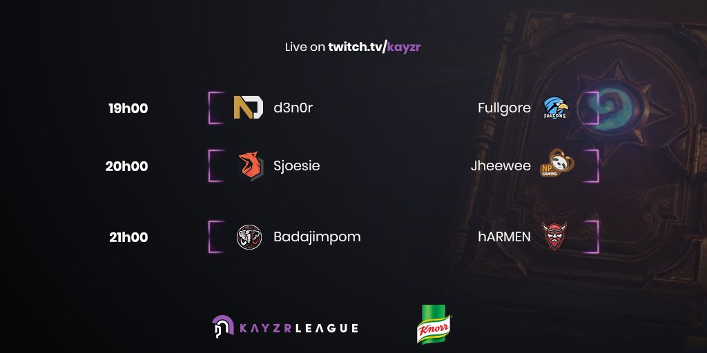 Ready for my second opponent @TF_Fullgore ! I will be facing him in the Hearthstone @KAYZRGG league and will be on stream at 19:00 http://twitch.tv/kayzr https://twitter.com/KAYZRGG/status/986636244645040131 …