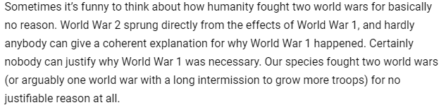 "World War 2 sprung directly from the effects of World War 1, and hardly anybody can give a coherent explanation for why World War 1 happened." ~Caitlin Johnstone https://caitlinjohnstone.com/2020/01/01/happy-2020-notes-from-the-edge-of-the-narrative-matrix/ …pic.twitter.com/2aV3K6ERYw