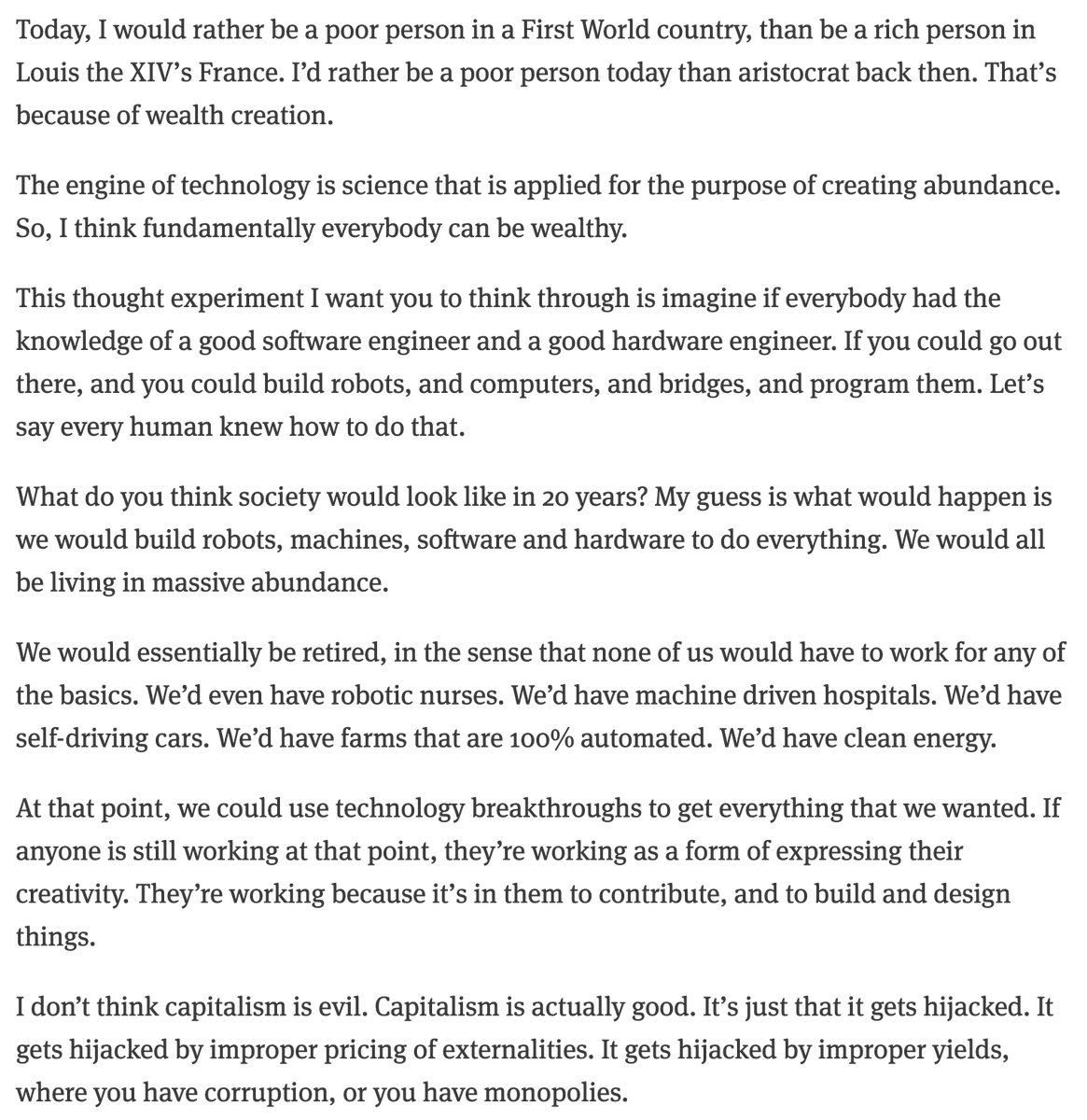 “A society that believes that wealth is created through luck or privilege will eat itself alive.” -