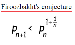 Firoozbakht's conjecture: (n+1)st prime is less than nth prime to the power of (1+1/n)pic.twitter.com/2aPffUtwbR