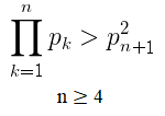 Bonse's inequality The product of the first n primes is bigger than the square of the (n+1)st prime where n ≥ 4pic.twitter.com/abcErY6wjF