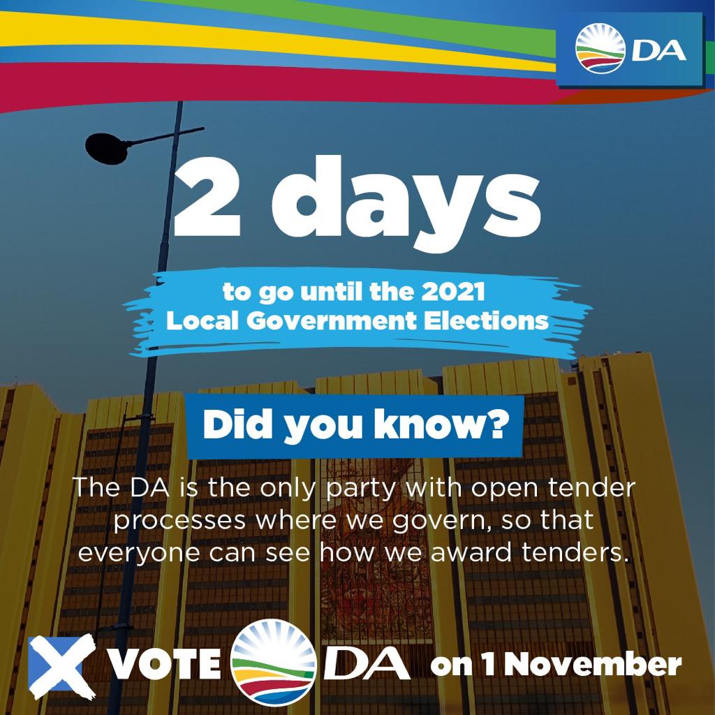 The DA is the only party with open tender processes where we govern, so that everyone can see how we award tenders!