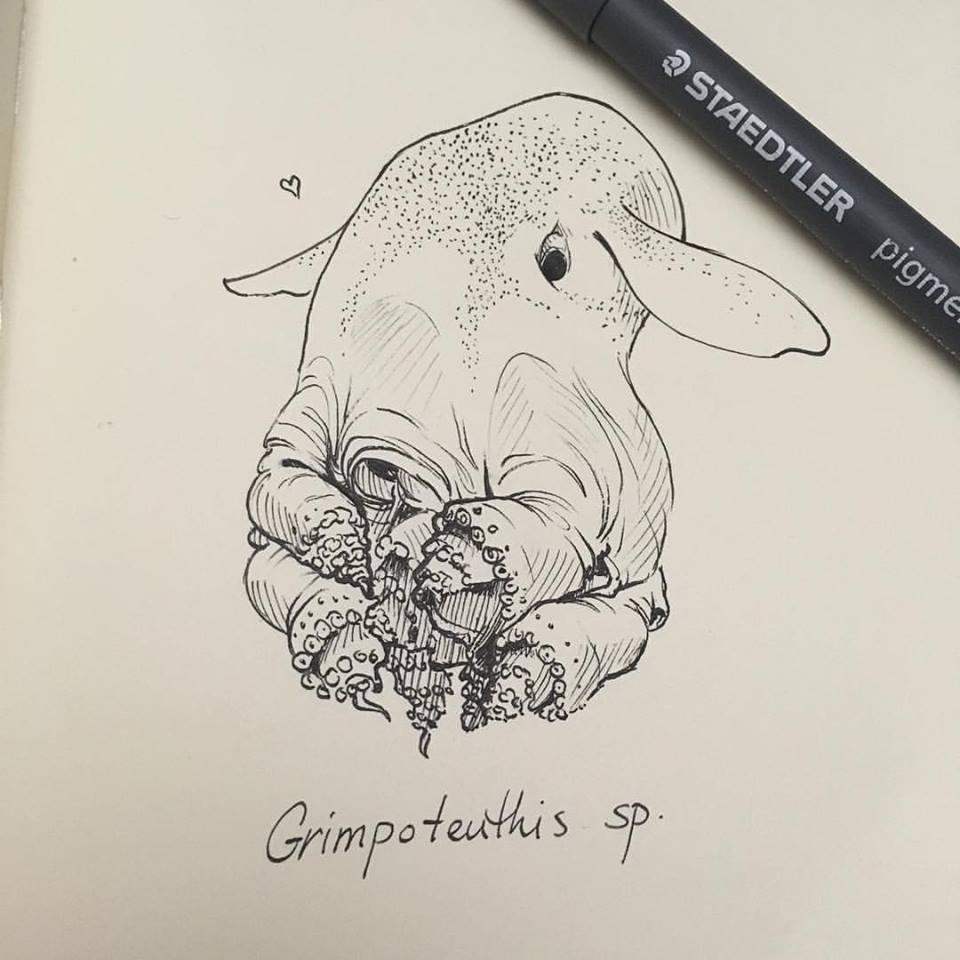 #inktober Oct 6th! Grimpoteuthis, aka the dumbo octopus! We know very little about these creatures, other than that they are super cute. <3pic.twitter.com/mbNJEY97s5