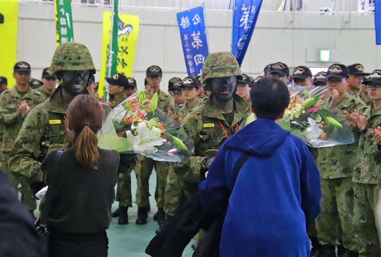 レンジャー帰還 家族と再会 ◇◆◇ 板妻駐34普連(連隊長・深田1陸佐)は11月25日、同駐体育館で第41期部隊集合教育「レンジャー」の帰還式を実施した...