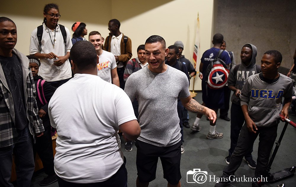#UFC fighters@CubSwanson &@HollywoodCase with kids in#Inglewood today Photos: http://goo.gl/m1GHZW pic.twitter.com/tSGSTTrGhn