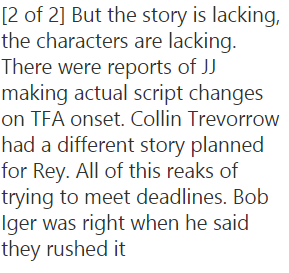 A few days ago I ranted about meaningless criticism and this is a perfect example: The story is lacking? The characters are lacking? Lacking what? What should they have instead? How and why is that better? This is language meant to seem unbiased but which says nothing.pic.twitter.com/U6LigH0VfL