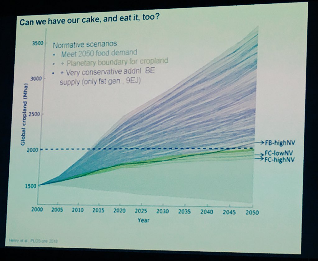Can we have our cake and eat it too? Modelling shows plenty of solutions for feeding the world (blue lines), but no solutions for meeting food demands, keeping within safe limits for croplands and having small amounts of bioenergy, says Arneth #negco2pic.twitter.com/Nn7WoY4iFz