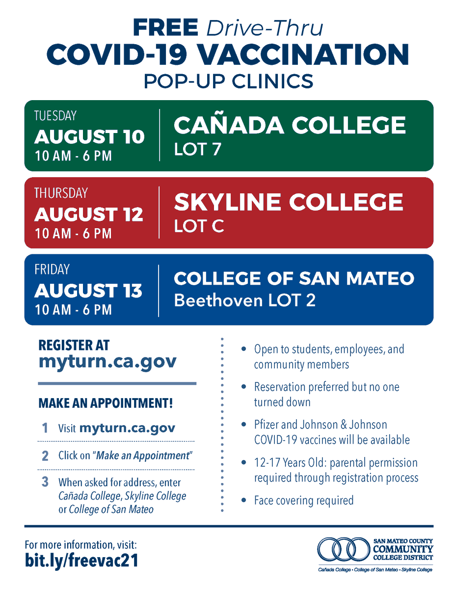 @smccolleges campuses this week. See the schedule below and get vaccinated to protect yourself, your family and friends against this very transmissible#DeltaVariant!#VaxxUpSMC@JohnSMCCCDpic.twitter.com/mTbu67avZg