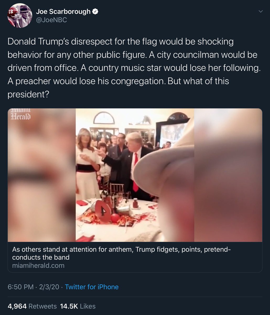 Donald Trump’s disrespect for the flag would be shocking behavior for any other public figure. A city councilman would be driven from office. A country music star would lose her following. A preacher would lose his congregation. But what of this president?https://www.miamiherald.com/news/politics-government/article239913588.html …