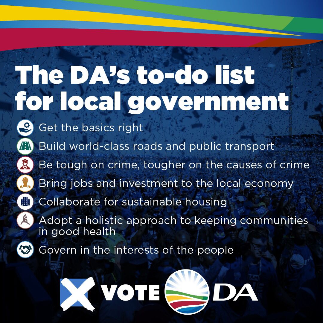 It's now or never! The DA is the only party with an established track record in government to bring change to municipalities that have essentially collapsed due to ANC corruption and maladministration.