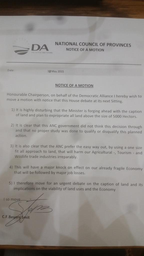 DA Limpopo NCOP member Beyers Smit calls for Debate on caption of Landhttps://twitter.com/MP_Smit_LIM/status/598461082836021249 …