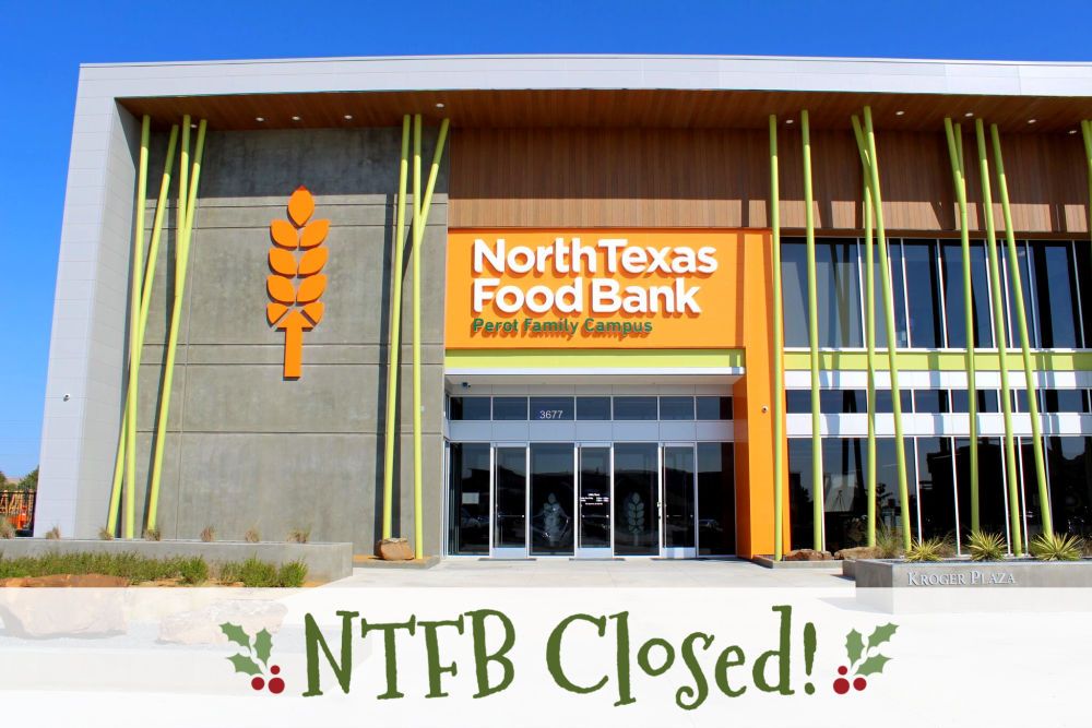 The North Texas Food Bank will be closed Saturday, December 22 through Tuesday, December 25 to allow staff time to spend with their loved ones during the holidays. We will resume our normal business hours on Wednesday, December 26. Thank you!