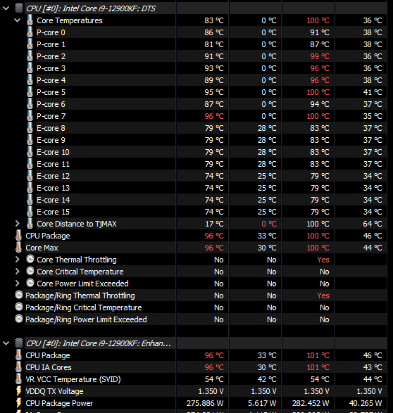 These new Intel CPUs run *HOT* under sustained full load, wowsers. This is with a 360mm AIO. Might need to try some under-volting.pic.twitter.com/3zd400LEjj