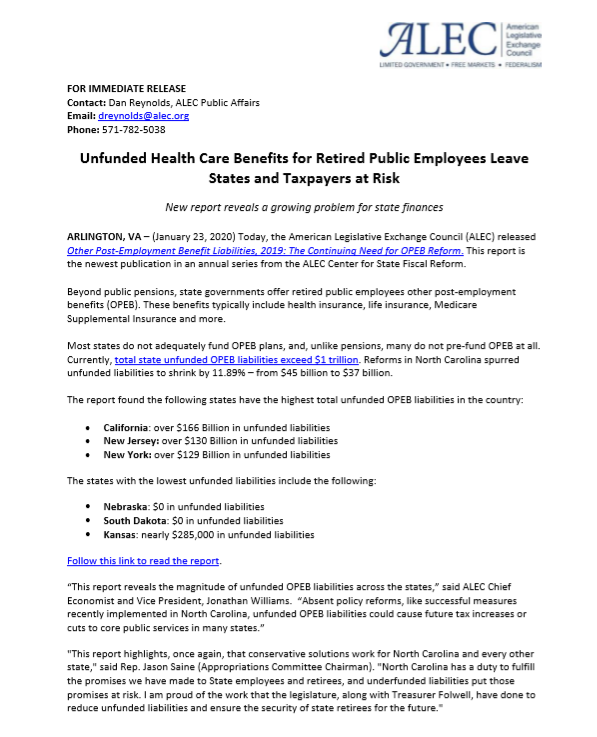 @ALEC_states 2019 Report on Other Post Employment Benefit (#OPEB) Liabilities from the ALEC Center for State Fiscal Reform Check out the Press Release Here: https://www.alec.org/press-release/unfunded-health-care-benefits-for-retired-public-employees-leave-states-and-taxpayers-at-risk/ …pic.twitter.com/BophrAUp22