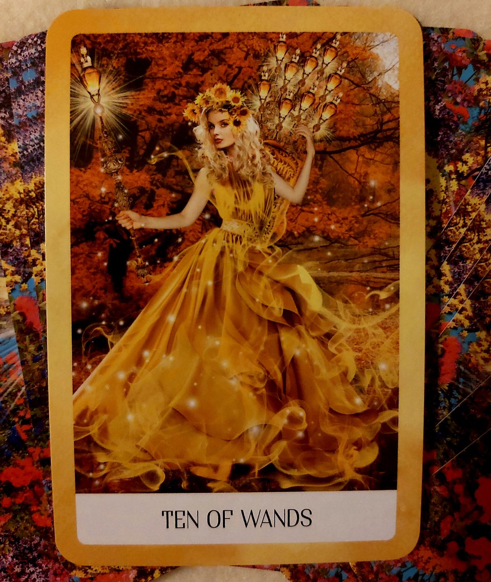 10 of Wands. Put down the Wands you don't need. You can only carry a couple of them comfortably. Be honest with yourself and ask what is a burden, what are you hanging onto? Not just for yourself but also for others. You don't have to do everything.