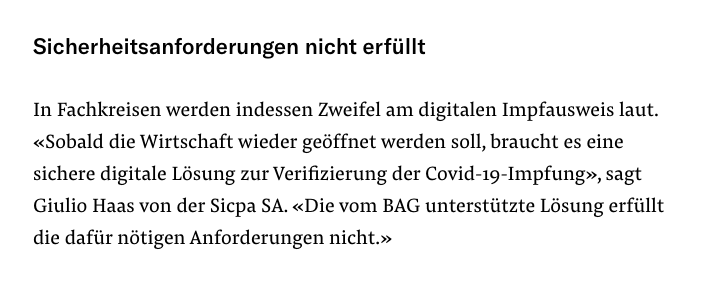 🇨🇭#Impfass-Fiasko: «Es braucht es eine sichere digitale Lösung zur Verifizierung der #Covid-19 #Impfung. Die vom @BAG_OFSP_UFSP unterstützte Lösung erfüllt die dafür nötigen Anforderungen nicht», Fachexperte Giulio Haas spricht in @nzz Klartext. https://www.nzz.ch/schweiz/schweiz-wie-sicher-ist-das-elektronische-impfbuechlein-ld.1595280 …pic.twitter.com/KjwyGSO8bm