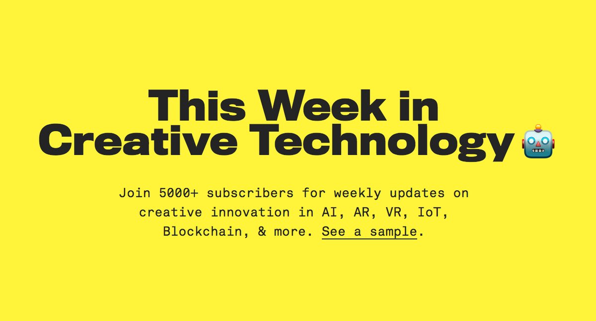 @daniel_eckler's "This week in Creative Technology" newsletter; It's packed with all things creative AI, AR/VR, IoT, blockchain, etc. See a sample and sign up here → https://ideas.danieleckler.com/
