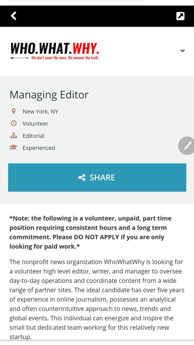 *Please* do *not* apply if you are looking for *paid work* https://whowhatwhyrb.applytojob.com/apply/295f25130a7e61577c7e01727206477d7d41381b67012a483c3b3f050f2c3f32296732/Managing-Editor?sid=C0GL8NPoLH3GC3vHMsgC68kpthjTUdkxe0j&source=LILI#TRSUHOGFvA …pic.twitter.com/a30l9Tvj90