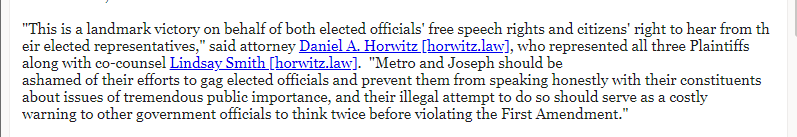 We won! I hope this is a lesson for superintendents & school boards everywhere: Get independent counsel, demand updates from your attorneys (we offered to settle for free, but the board never knew), and never, ever try to muzzle elected officials.https://twitter.com/danielahorwitz/status/1538965420216045569 …