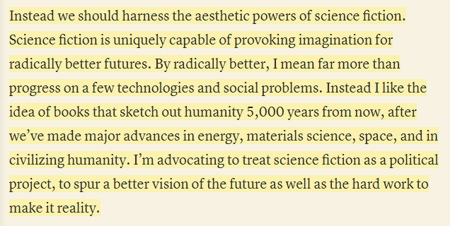 @danwwang and@reidhoffman on the powers of science-fiction. "Science fiction is uniquely capable of provoking imagination for radically better futures." https://danwang.co/2019-letter/ pic.twitter.com/pQM7xYC47h