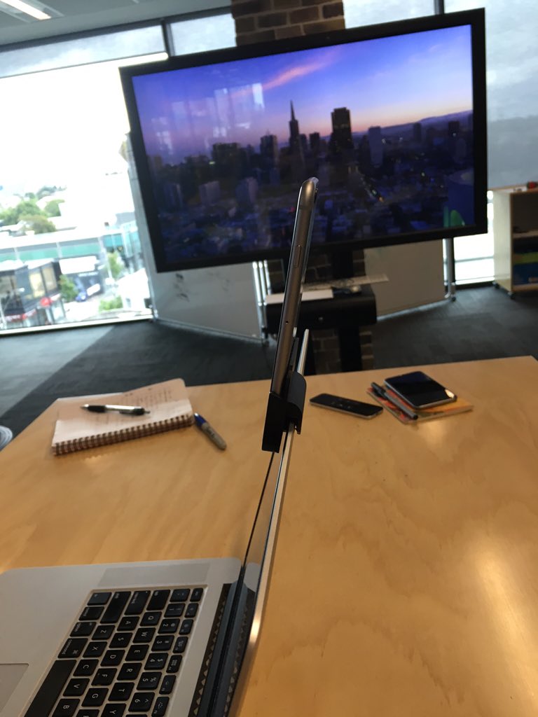 #design on the iPhone using@sketchapp Mirror as the second screen with this 3D printed clip https://github.com/danielwhyte/phone-on-macbook-mount …pic.twitter.com/ENrhtOA844