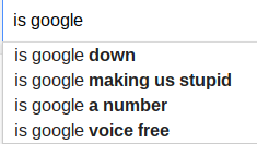 I'm not sure what my favorite part of this is. People using Google to check if Google is down? People wondering if every online service is made by Google? People asking Google for stock picking advice (not shown, lower down)?