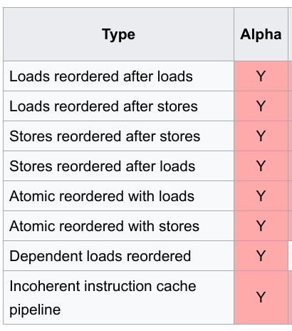 Every time I’m reminded of DEC Alpha I wonder about that “dependent loads reordered” –how is that even possible without violating causality?https://twitter.com/whitequark/status/808824867369824257 …