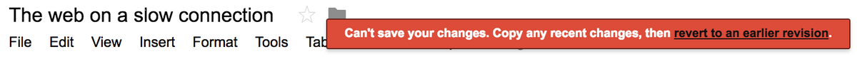 Can't edit my blog post on how the web is problematic on slow connections because google docs can't handle my hotel's slow connection.pic.twitter.com/w6e4cZUX4b