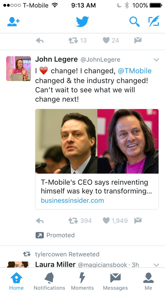 Why do I see so many promoted tweets by the CEO of t-mobile? I must see more from him than from any two other advertisers combined.pic.twitter.com/VXnPN0xpaa