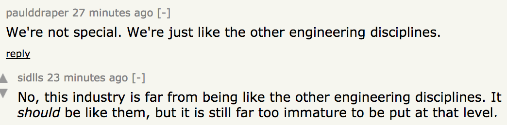 I think of this story whenever people tell me that software would be better if we followed RealEngineering™ practicespic.twitter.com/tyfwWskzAq