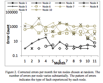 Why ECC? 6% fail rate w/16GB. Error distribution shows plenty of box w/100+ errors per month http://danluu.com/why-ecc/ pic.twitter.com/PLuTvCvqr0
