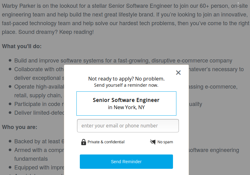 The jobs page hits you with a popover when you go to close the tab