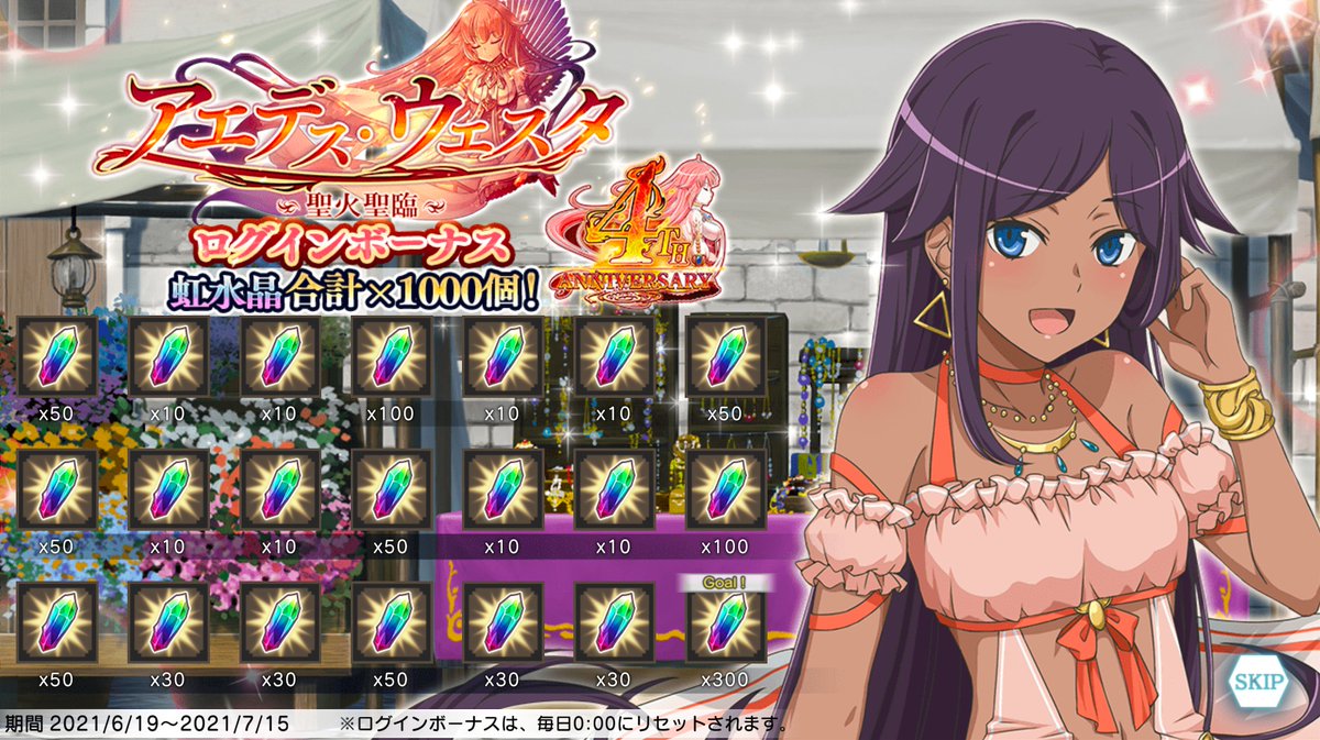 【ログボで合計1000個】 6/19(土)より、「アエデス・ウェスタ-聖火聖臨-」開催を記念したログインボーナスがスタート!