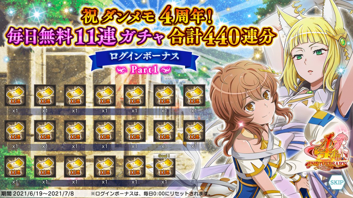 #ダンメモ4周年 記念毎日無料11連ガチャキャンペーン開催! なんと期間中合計で【