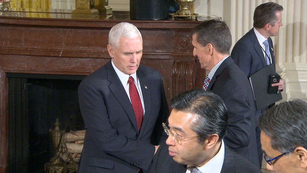 National Security Adviser Mike Flynn AND VP Mike Pence are both at the Trump-Abe presser. Could get awkward if Trump asked about Flynn.